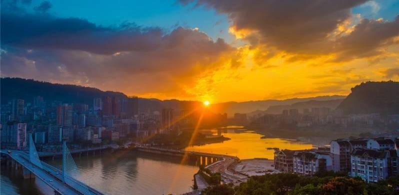 Wanzhou Sunset and Moon on one Frame | The Paper