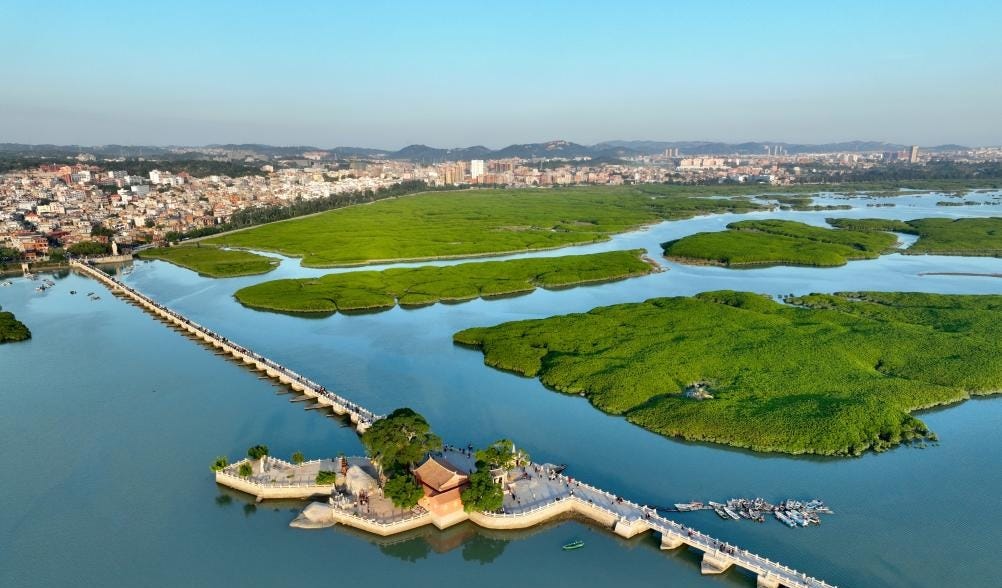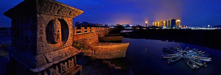 The bridge’s 108 guardian lion carvings each face a different direction to ward off river spirits, a detail copied in Quanzhou’s modern skyscrapers.