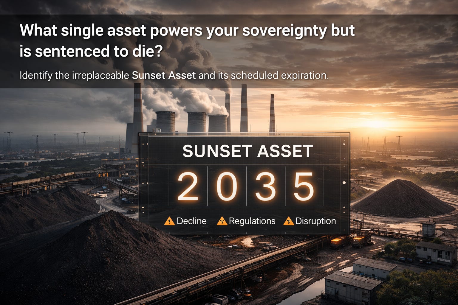 Output: A clearly named Sunset Asset (e.g., thermal coal exports, legacy broadcast licensing, gasoline engine manufacturing).