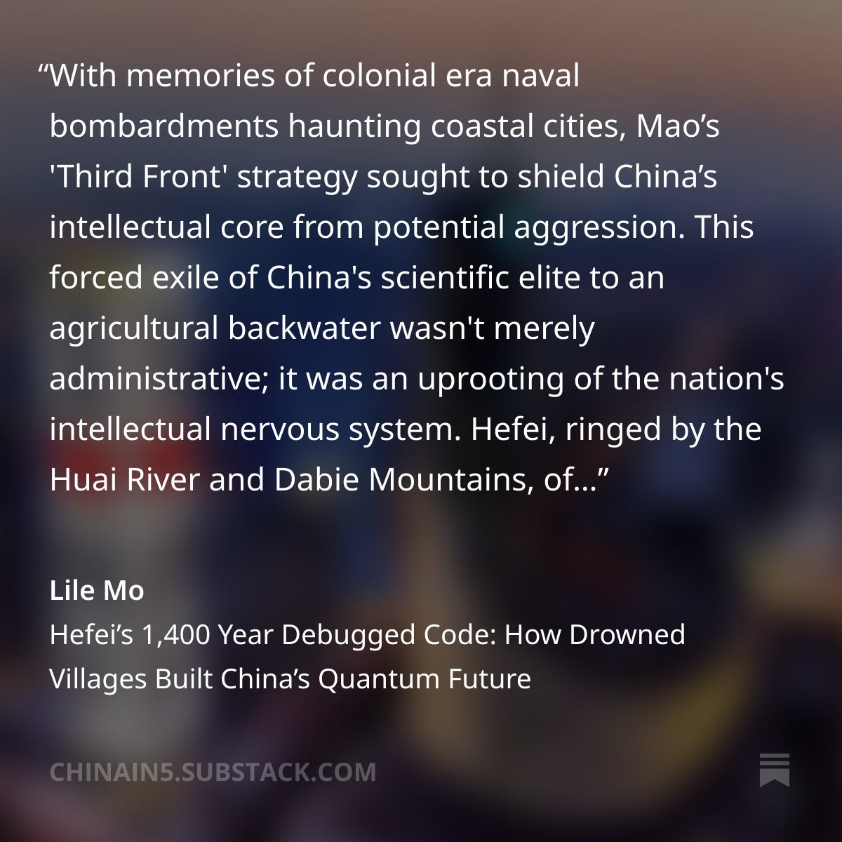 The city’s founding was not organic but strategic. In the mid 1960s, under the Third Front Construction policy, Beijing deliberately sited massive, strategic industrial complexes in China’s remote interior to secure them from potential coastal attack.2 For those who joined us during the Hefei Spotlight (City 1), this is the same strategic logic that relocated the University of Science and Technology of China (USTC) from Beijing to Hefei, turning intellectual capital into a secure, inland asset.